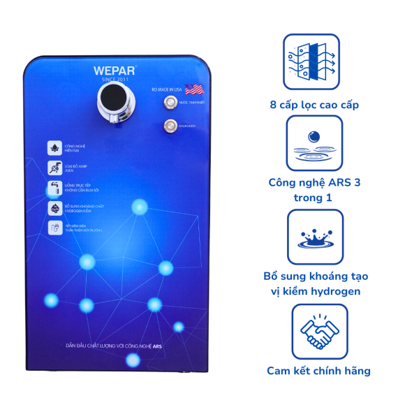 Sản xuất hệ thống, máy móc tiên tiến, hiện đại. Dẫn đầu chất lượng nước sau lọc với công nghệ ARS WEPAR độc quyền.