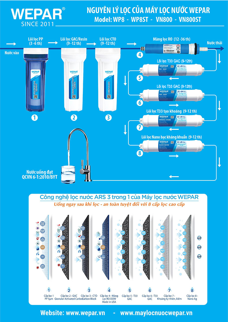 CẤU TẠO MÁY LỌC NƯỚC WEPAR CAO CẤP 8 CẤP KHOÁNG