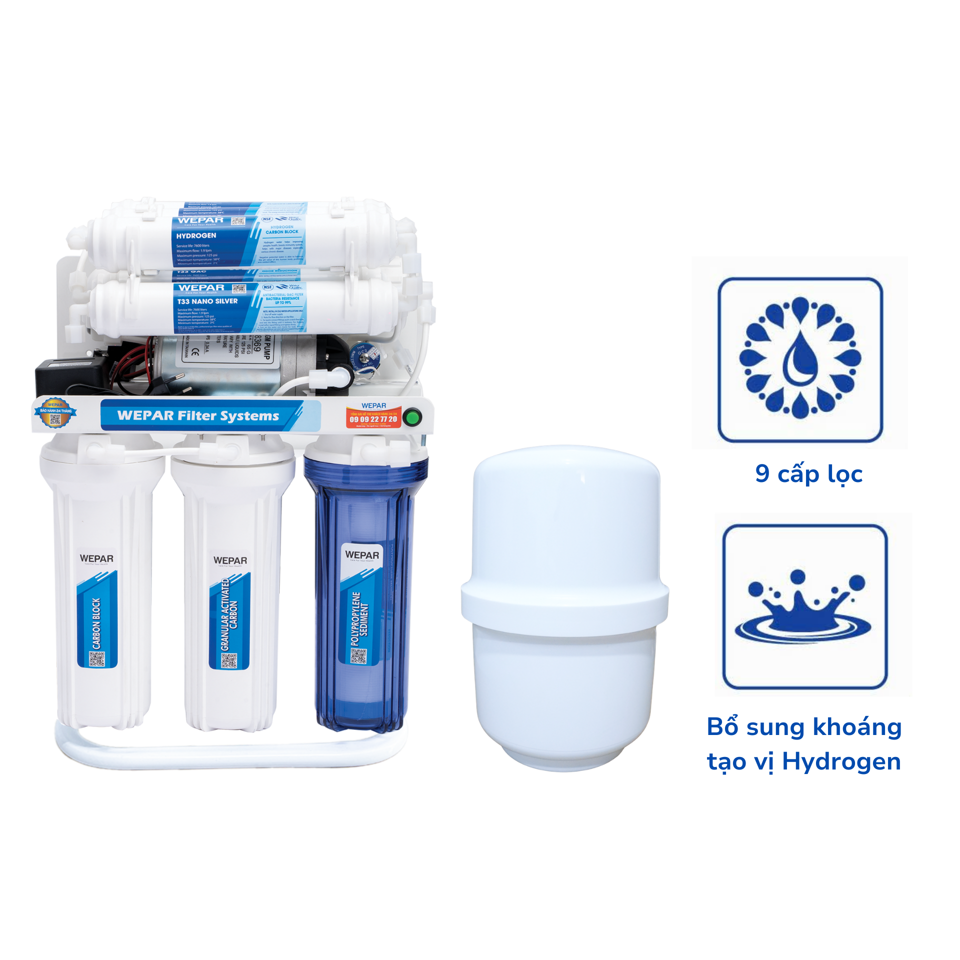Máy Lọc Nước RO WEPAR cao cấp với 9 cấp lọc – WP9 Hydrogen – uống trực tiếp không cần đun sôi, bổ sung khoáng và vị kiềm tốt cho sức khỏe.